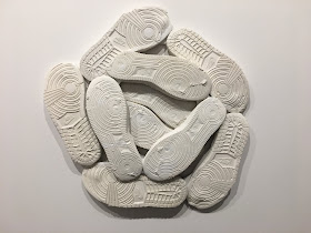 | In some ways, the current sequestration provides ideal conditions for art. We inhabit a slower, more private world, allowing deeper connection to the limited information surrounding us. It is a good time to revisit an exhibition I saw last fall at the JMF featuring their outreach program for young artists, no longer extant: Early Practitioners Artist Council Link And for more information, introducing the artists themselves: JMF_2019-early-art-practitioners_Link The above is from a series of riffs of vaginal imagery on mailing labels presented in a vitrine by Manhoor Sheikh. |