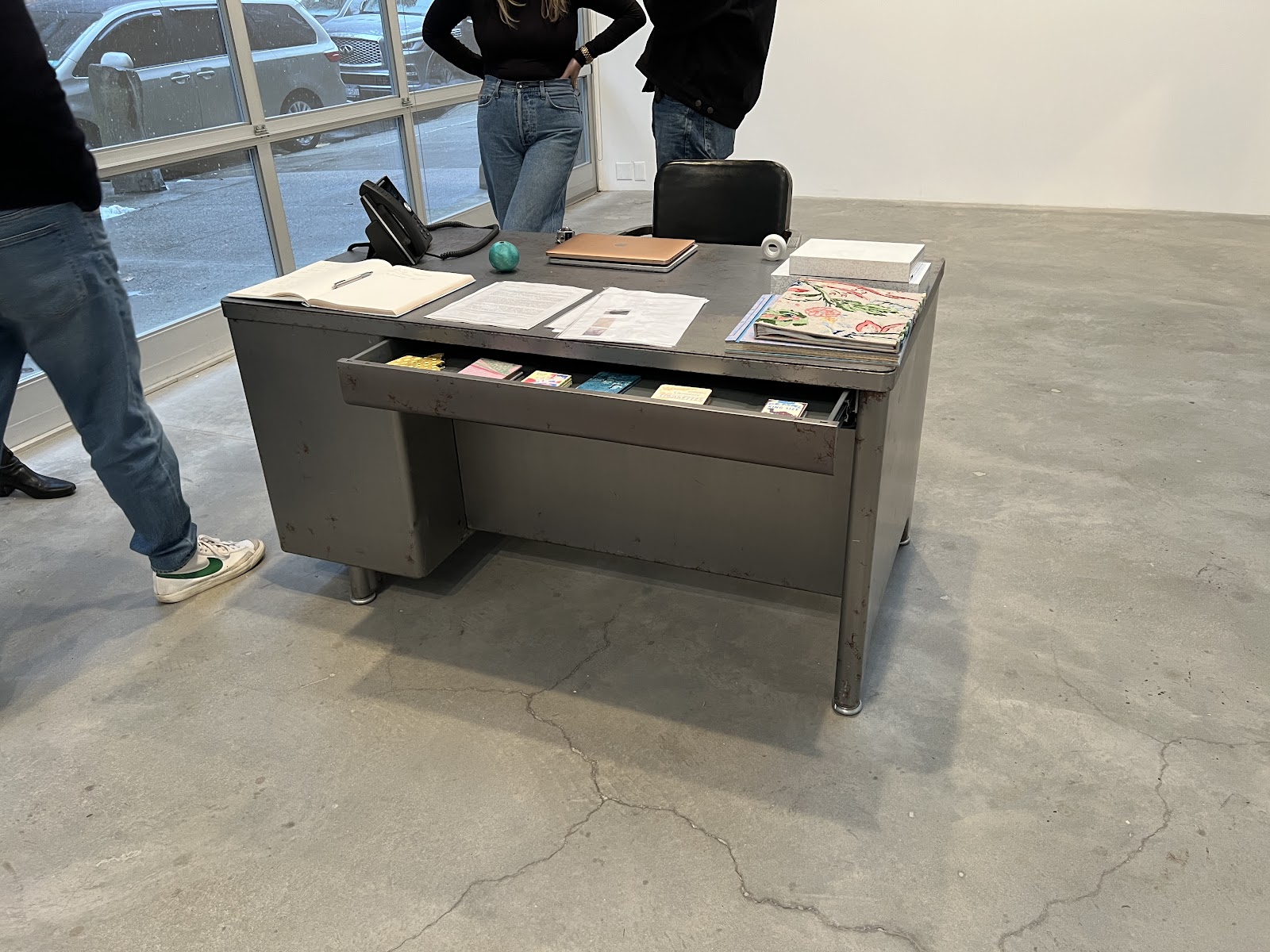 The vintage desk in the anteroom, where the gallerist sits.